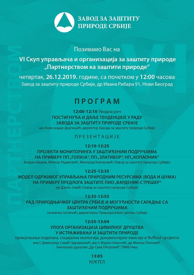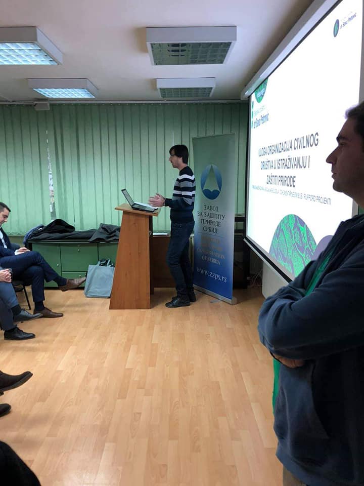 Predstavnici BDDSP, Dimitrija Savić-Zdravković, Marko Nikolić i Miloš Popović, su 26. decembra učestvovali na redovnom godišnjem skupu upravljača i organizacija za zaštitu prirode pod nazivom “Partnerstvom ka zaštiti prirode”, održanom u prostorijama Zavoda za zaštitu prirode Srbije. Na ovom skupu imali smo priliku da istaknemo značaj uloge organizacija civilnog društva u istraživanju i zaštiti prirode i projekte koje smo realizovali prethodnih godina pod pokroviteljstvom Rufford fondacije.